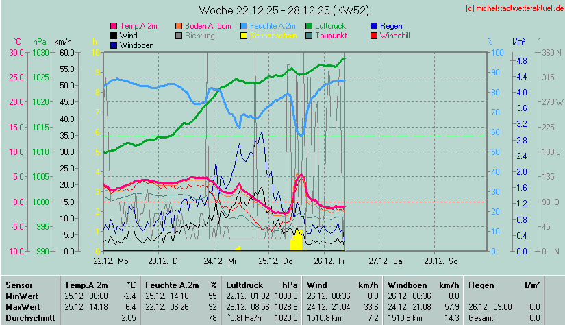 Min.(09:02) (Vorjahr: -1,2 °C) |